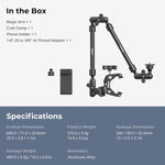 ✅ Unrivaled 22-Inch Reach: With an incredible 56cm/22" length, this arm lets you position your gear in ways you never thought possible. Get stunning overhead angles for your streams, place a light source in the perfect spot for cinematic quality, or position a microphone for flawless audio, all while keeping your workspace clear.
