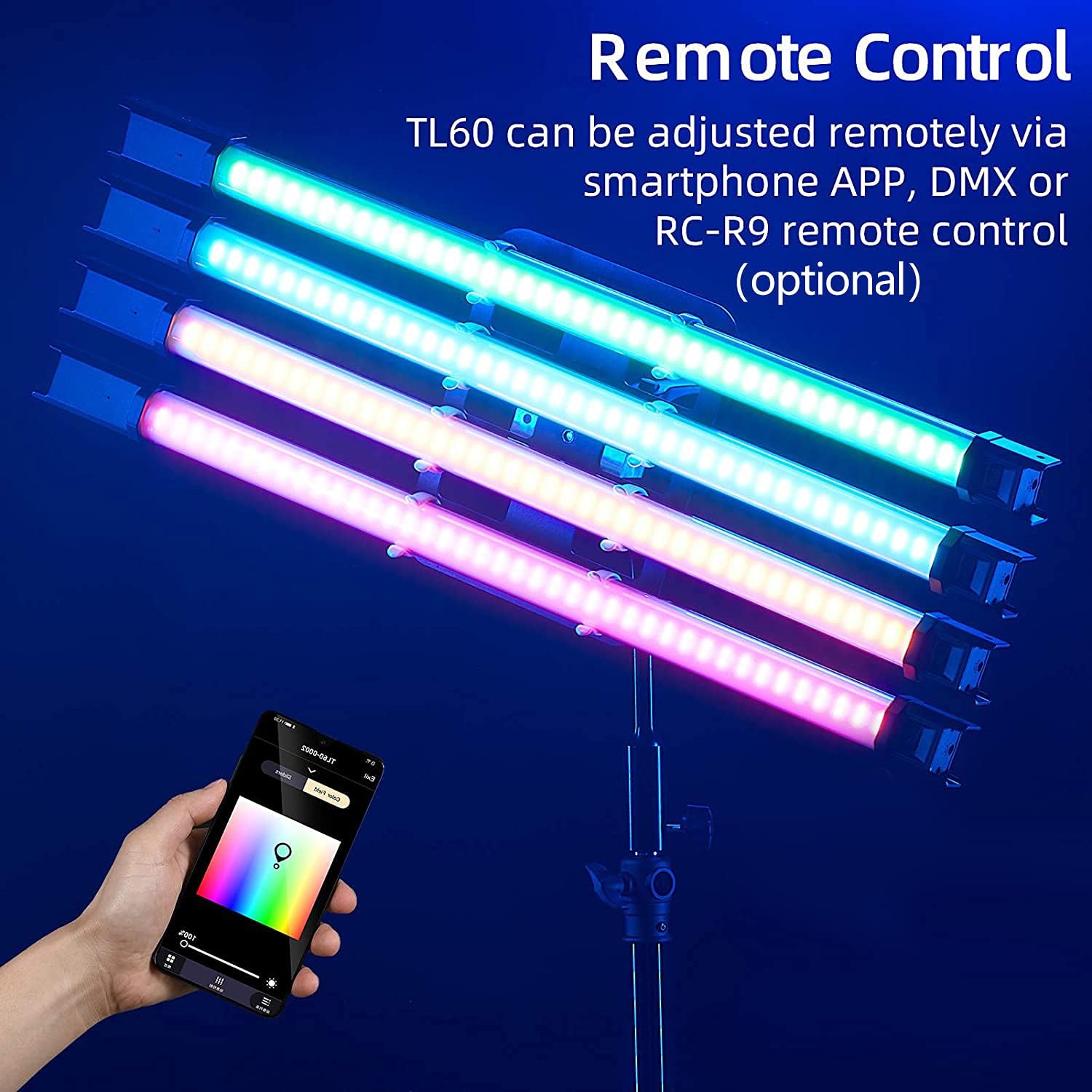 Multiple Control Options: Control the TL60 via the Godox Light app (Bluetooth), 2.4GHz wireless remote, or DMX for versatile operation.