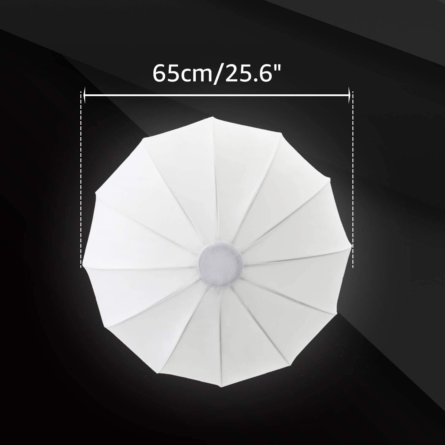 The CS-65D features a 65 cm diameter, offering generous coverage for you, your co-hosts, or your product shot. Setup is quick thanks to the collapsible “lantern” mechanism that springs open in seconds.