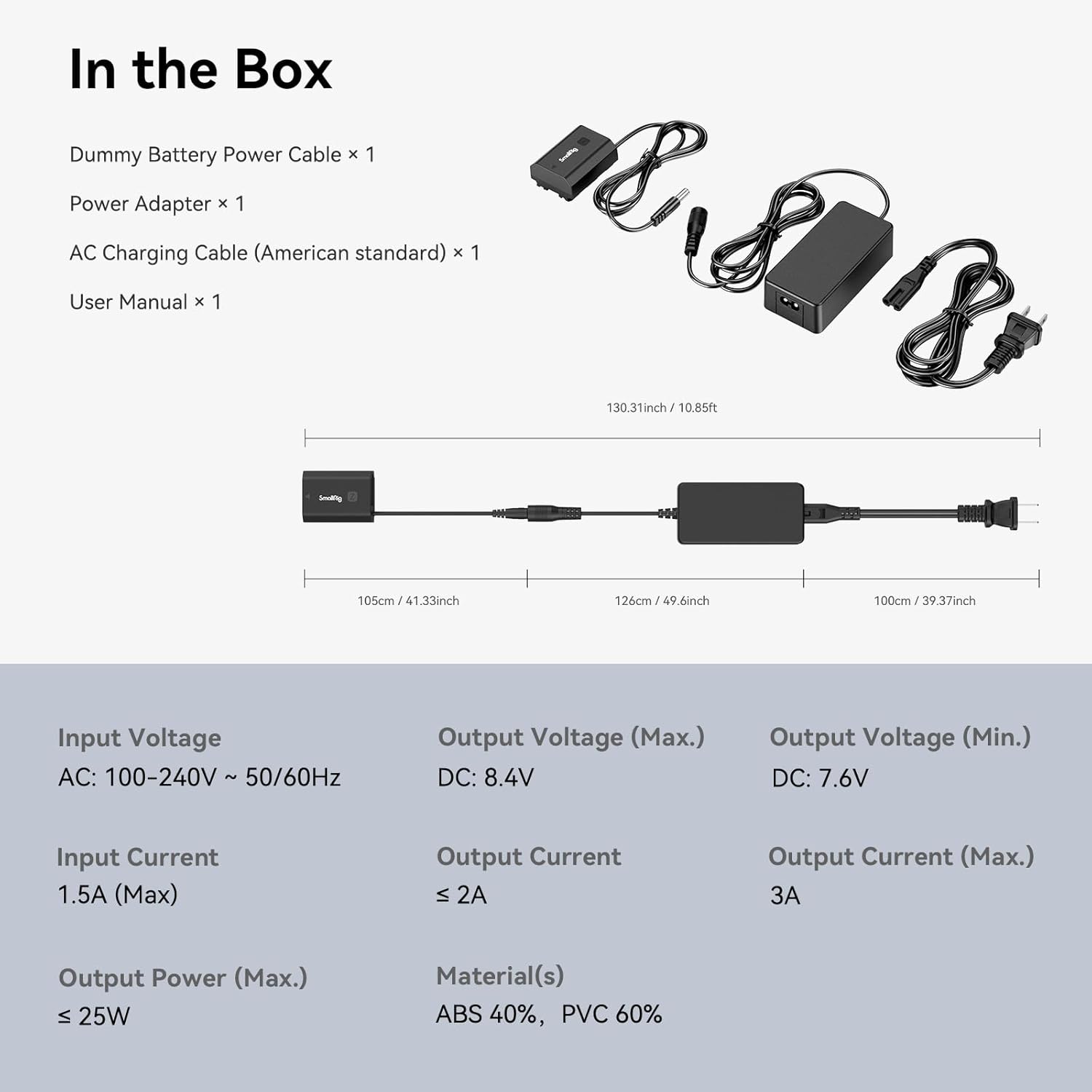 SmallRig NP-FZ100 Dummy Battery Power Adapter Kit (3206)