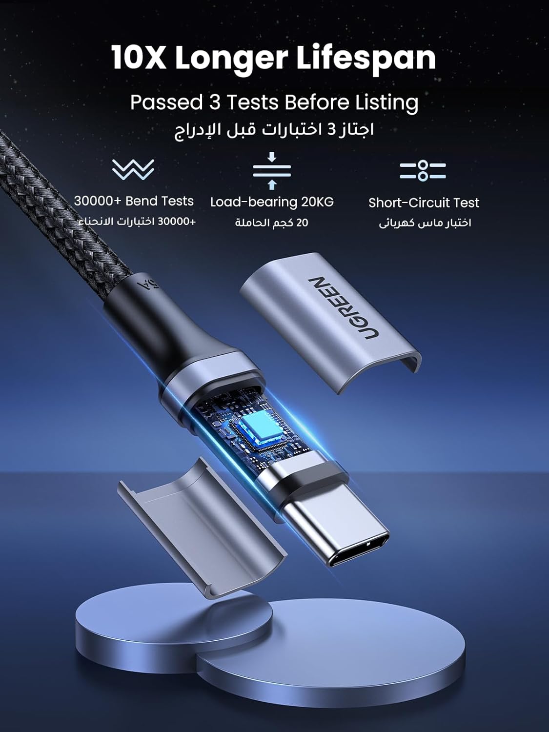✅ Built to Outlast Your Gear: Forget cables that fray and fail. This UGREEN cable is built with a double-braided nylon exterior and reinforced connector joints that have been tested to withstand over 10,000 bends. It's a rugged, tangle-free cable designed for a creator's demanding daily use.