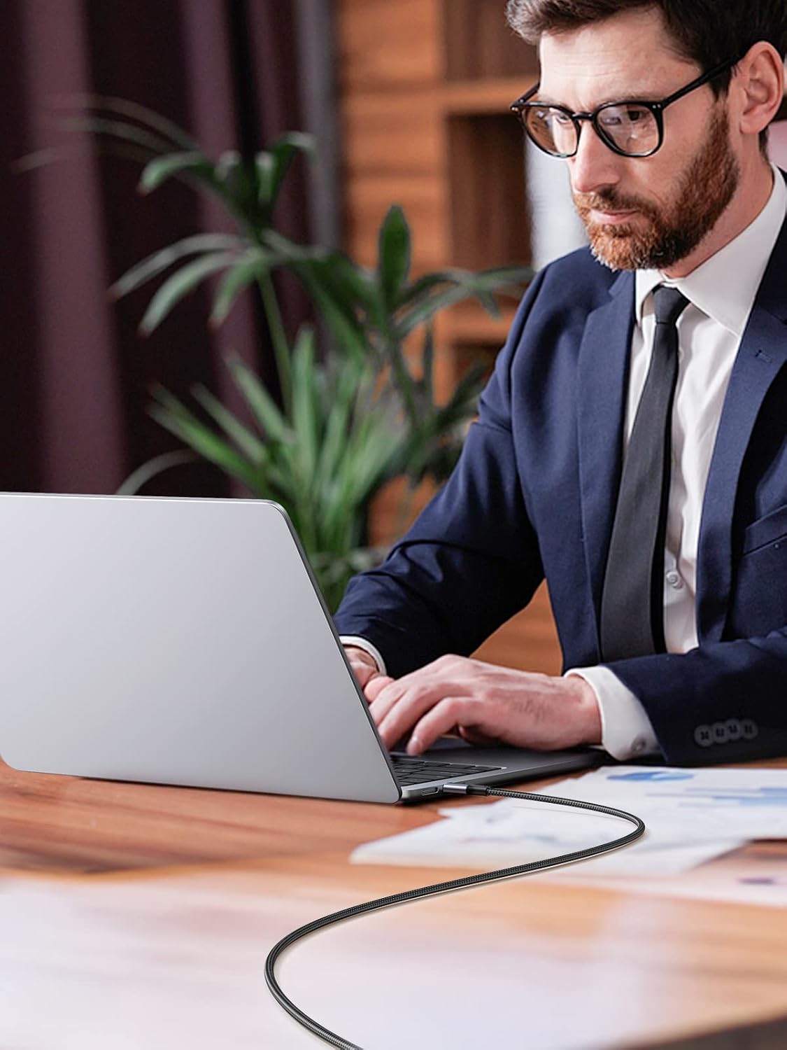 ✅ Universal High-Speed Compatibility: The intelligent E-Marker chip ensures this cable works perfectly and safely with a massive range of USB-C devices. It delivers the optimal power for everything from a MacBook Pro, Dell XPS, or iPad Pro to a Nintendo Switch and the latest Android smartphones.